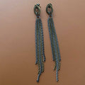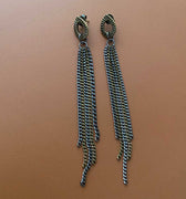 Brinco latão, base ouro velho, franja de correntes grafite e ouro velho.