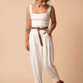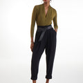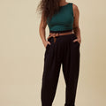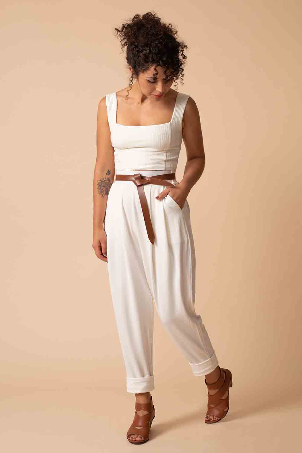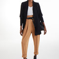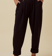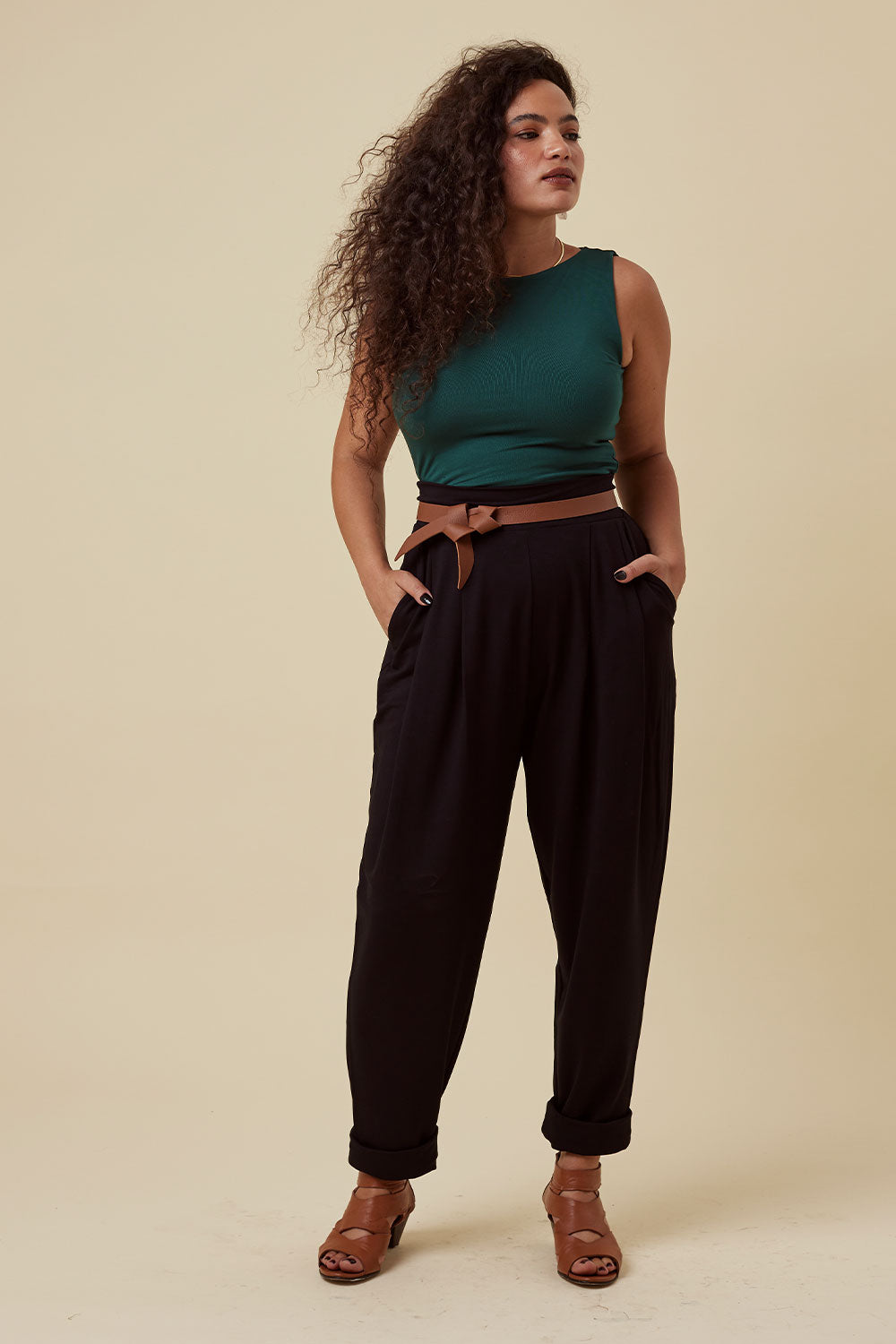 Calça com modelagem oversized estilo baggy, ampla, cintura alta, bolsos faca e com pregas. Super cool, uma nova versão chique pra calça de moleton confortável, ou ainda, uma nova versão confortável pra sua calça chique de alfaiataria. Para ser usada larguinha, com folga no quadril e pernas.