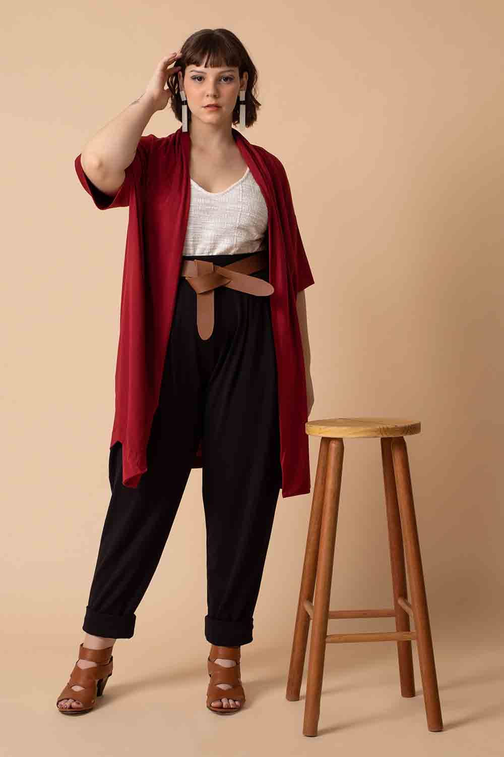 Atenção: a peça é naturalmente ampla, larga no quadril, o que deve ser considerado para escolha do tamanho é a medida da cintura alta.