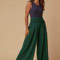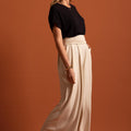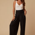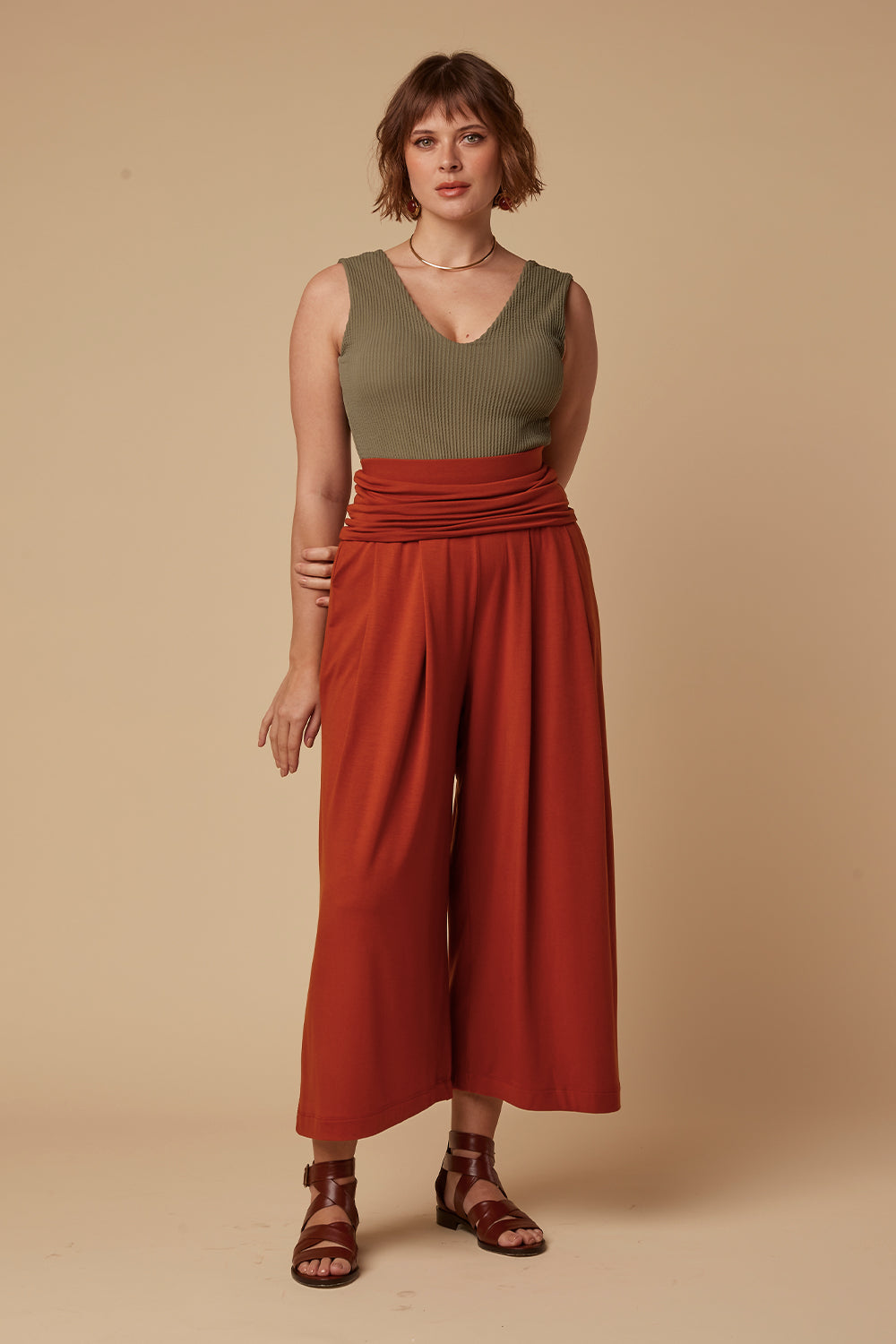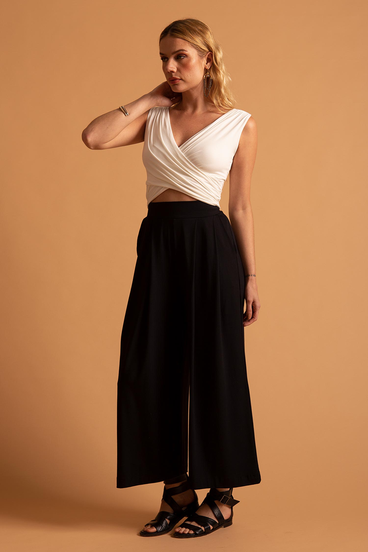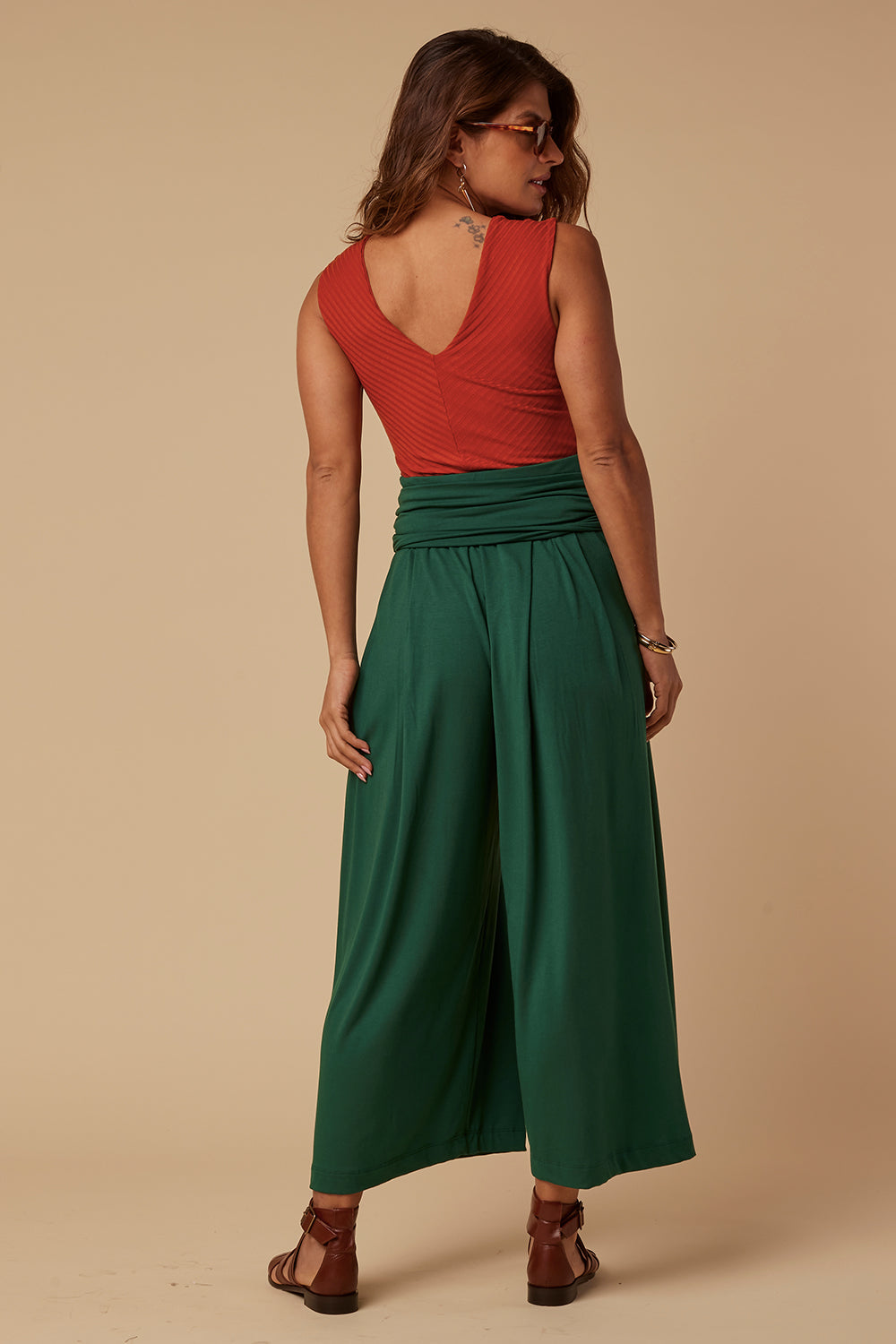 Possui elástico na cintura, cós largo, pregas na frente e atrás e bolsos faca. Sua modelagem é bem oversized com o quadril bem amplo e o gancho grande, sendo somente a cintura mais marcadinha. Portanto, não é necessário você escolher um tamanho maior que o seu habitual, pois esse modelo já tem o caimento super soltinho.