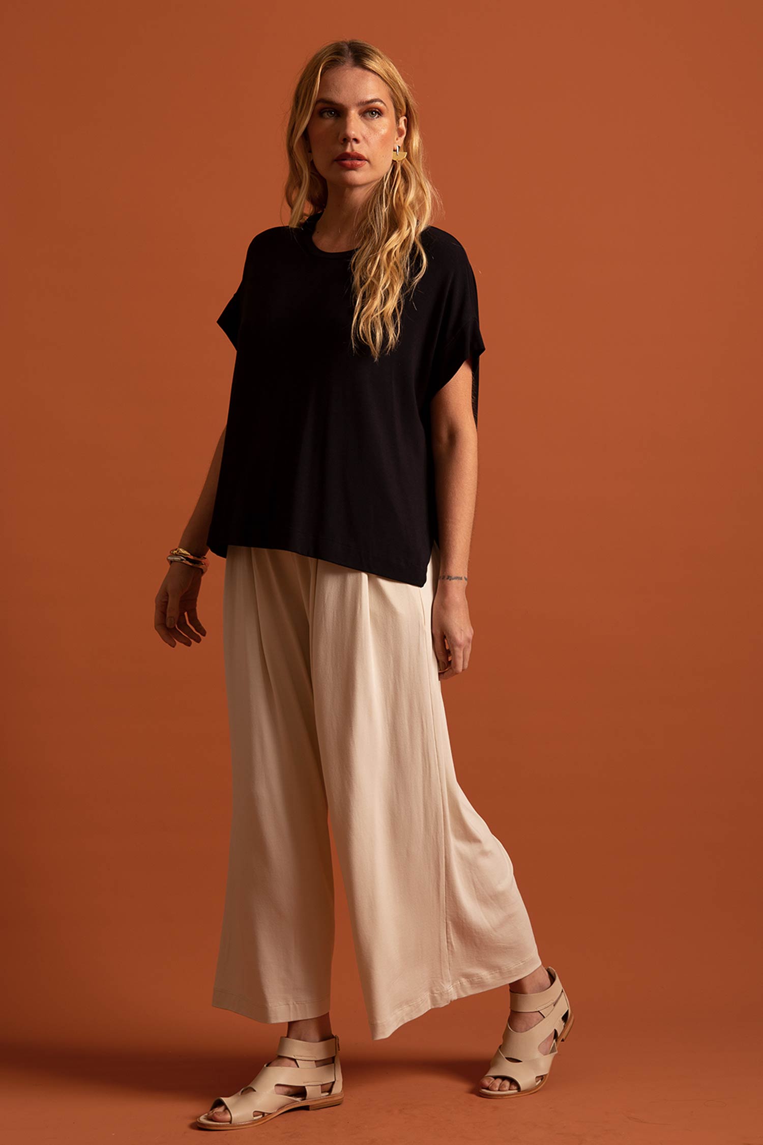 Feita em malha de modal de procedência certificada, essa fibra além de ser muito mais gentil com o meio ambiente, é mais macia, resistente ao peeling ( bolinhas) e à preservação da cor do tecido.