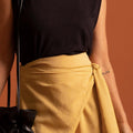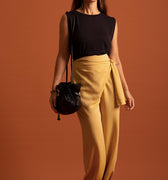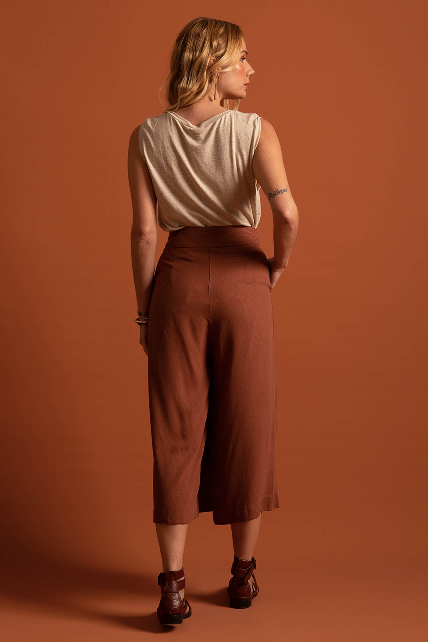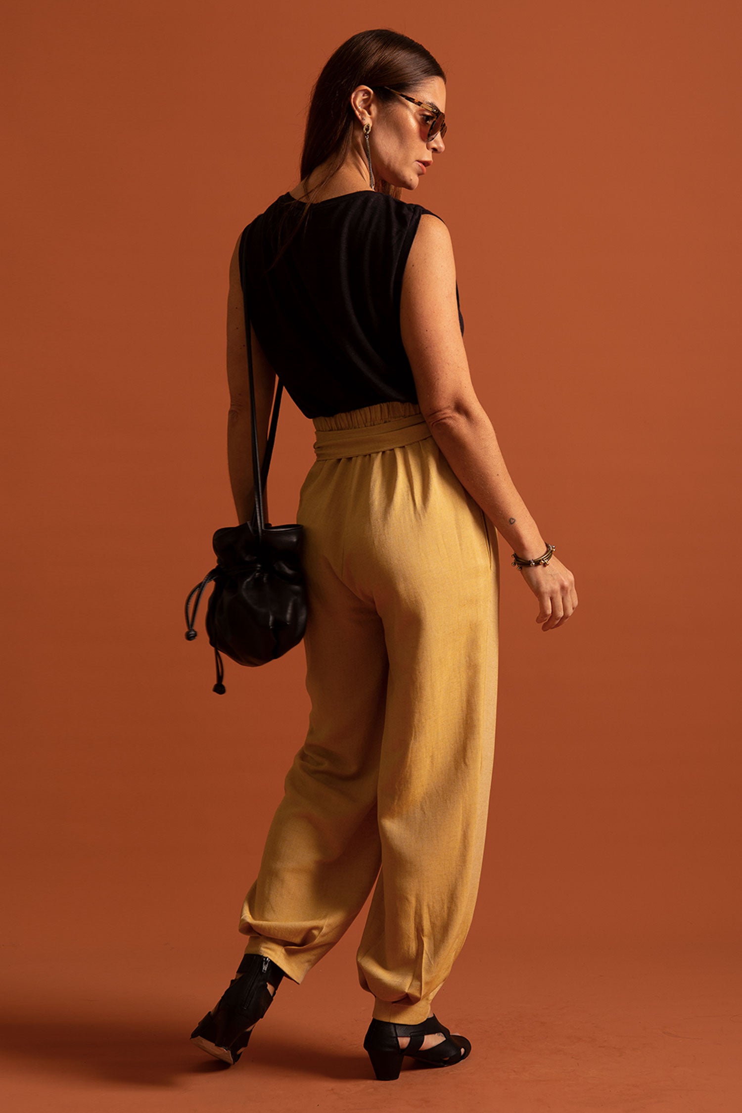 Possui decote canoa e cava ampla que confere modernidade à peça e comprimento híbrido, que pode tanto ser usado soltinho pra fora da calça, quanto levemente por dentro dos cós de cintura alta.