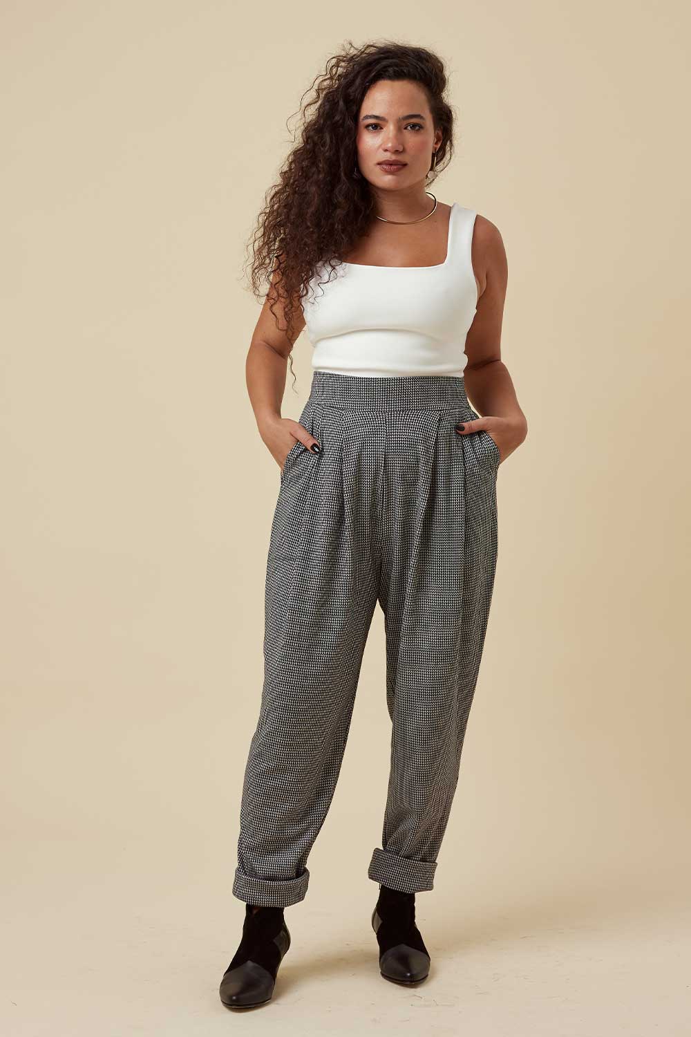 Nossa super cool Calça Baggy agora na versão Pied-de-Coq, um clássico da estamparia vintage que atualizamos de um jeito super moderno.