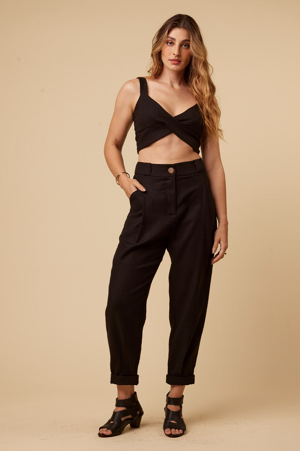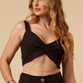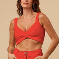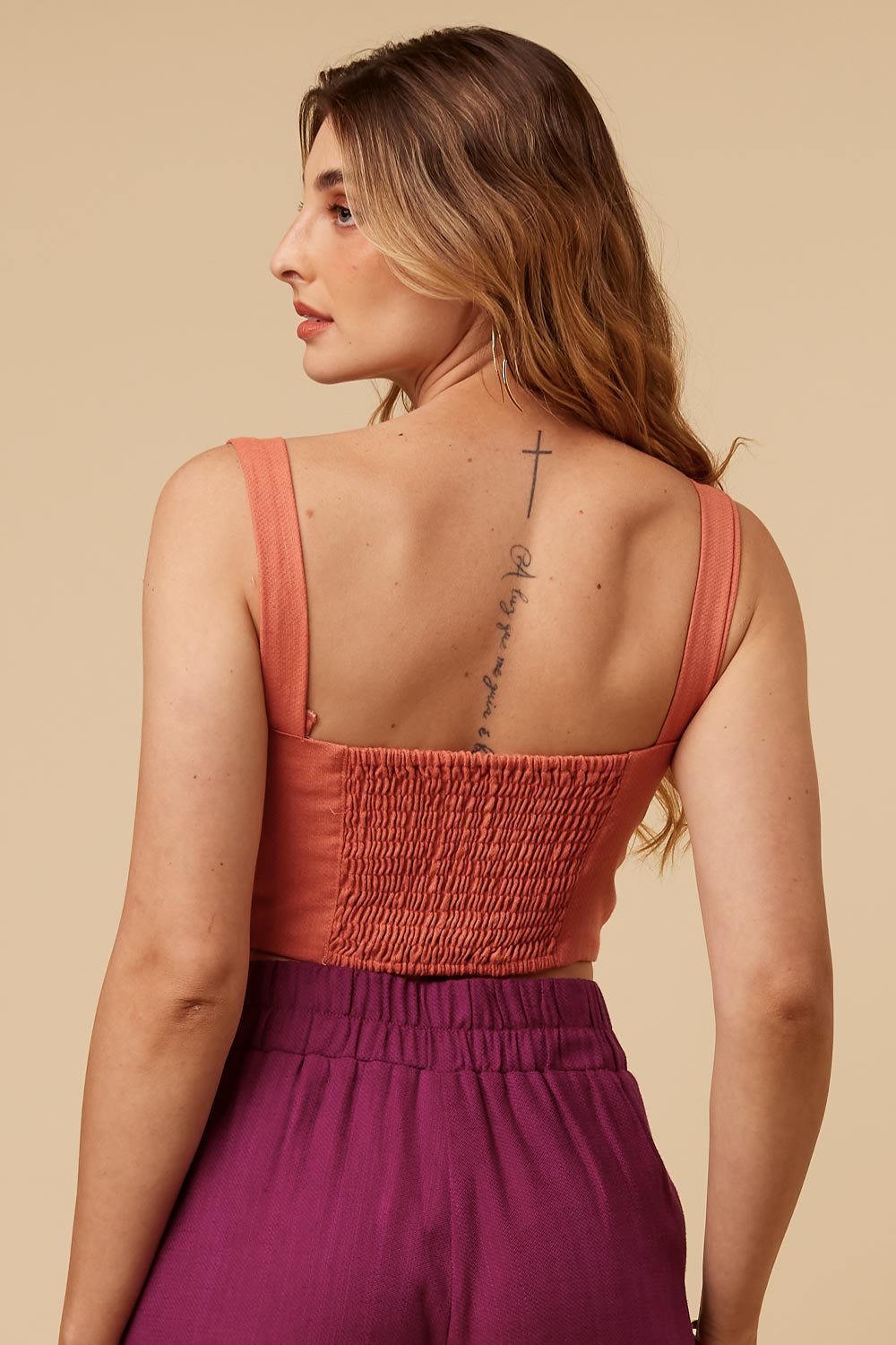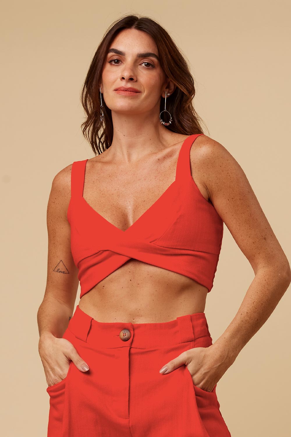 Top croped com detalhe transpassado em vai e vem, todo estruturado e com otima sustentação. Possui elástico atras e é todo forrado para maior conforto ao toque.
