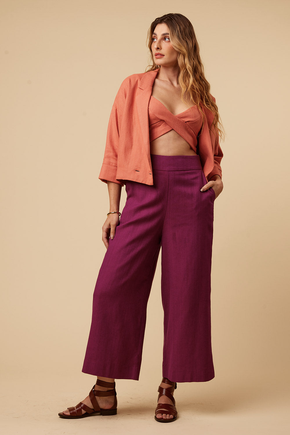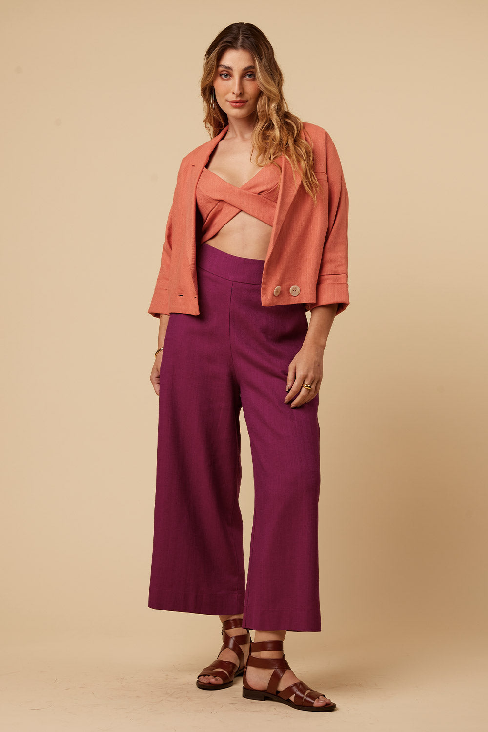 Esta peça forma conjunto em cor e tecido com Saia Jun, Calça Lorena, Calça Bangkok, Calça Lana, Short Lara, Veste Beá e Blazer Jean Paul. Visite também esses produtos.