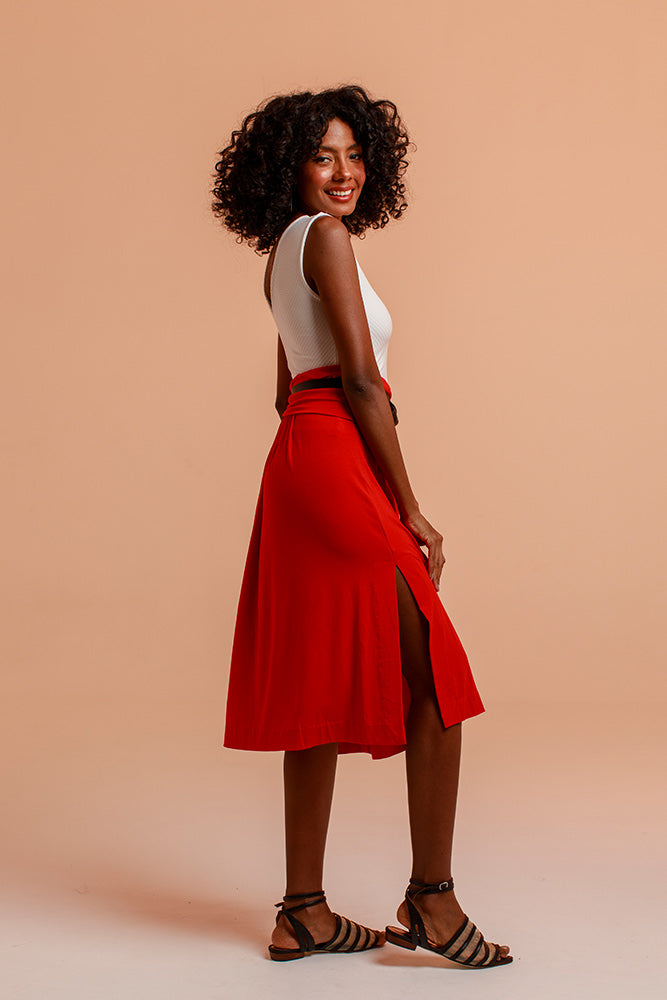 Com o mesmo cós da nossa Calça Marrocos ( pala dupla), essa saia nasceu pra ser sucesso.