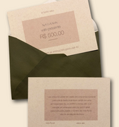 Você escolhe: no modelo virtual enviamos uma arte pelo Whatsapp pra você com instruções para a pessoa presenteada, o número da nota fiscal e prazo de troca. Basta encaminhar a mensagem para a pessoa presenteada e pronto! Ela será orientada nas instruções a mandar uma mensagem pra gente orientá-la sobre o uso no e-commerce ou nas lojas físicas.