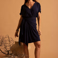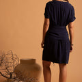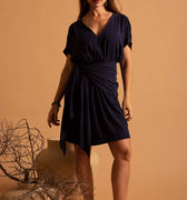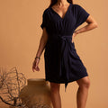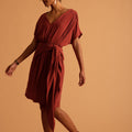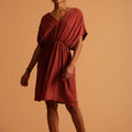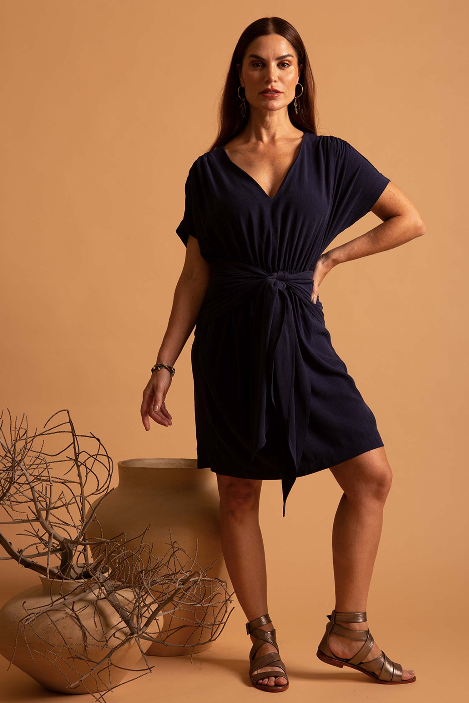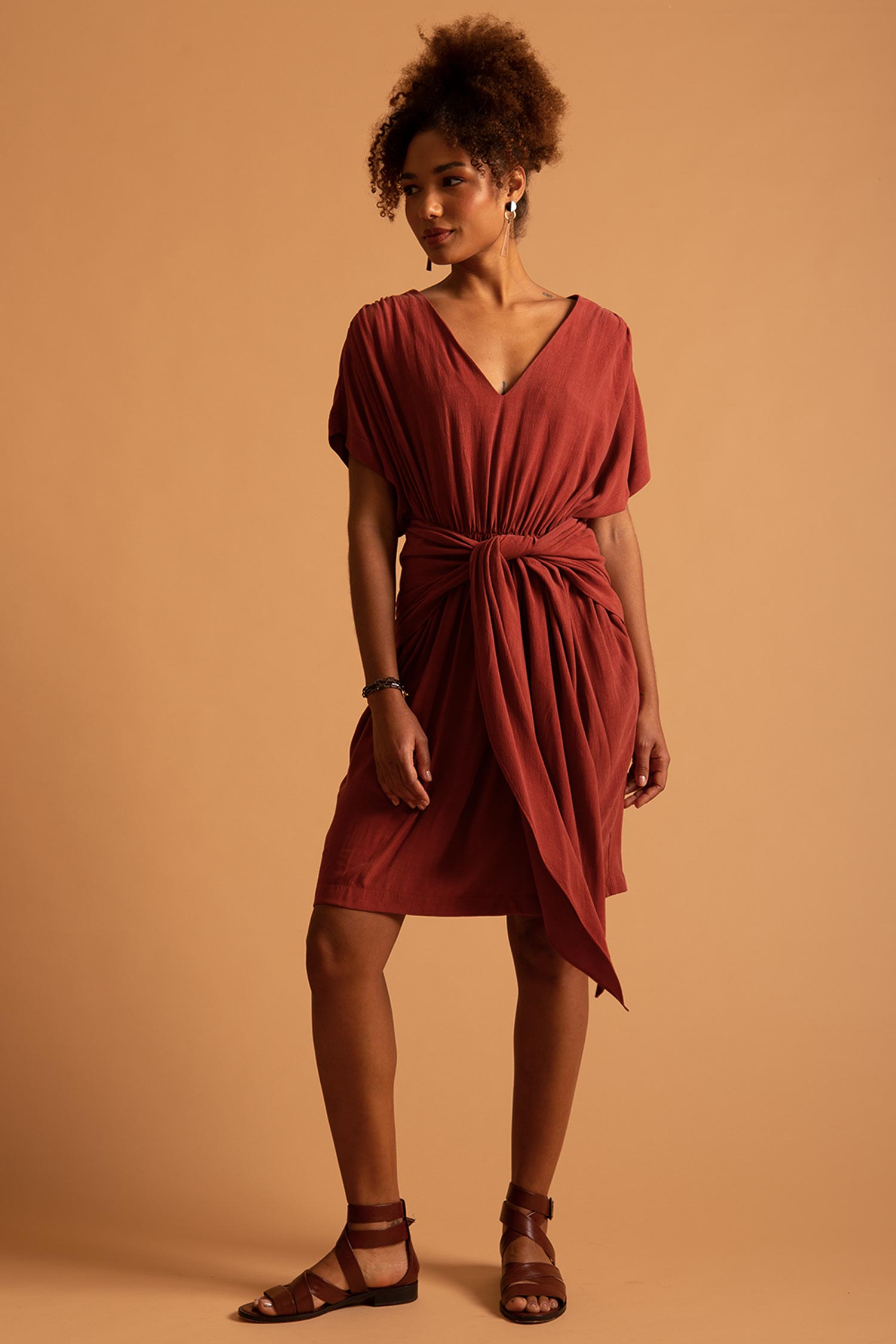 Vestido amplo, com modelagem soltinha, mangas com detalhes de franzido e blusé no corpo. Possui elástico na cintura e comprimento no joelho. Tissu é lenço em francês e batizamos este vestido com este nome pois ele tem como detalhe especial um lenço avulso que pode ser amarrado no quadril ou na cintura, com várias possibilidades.