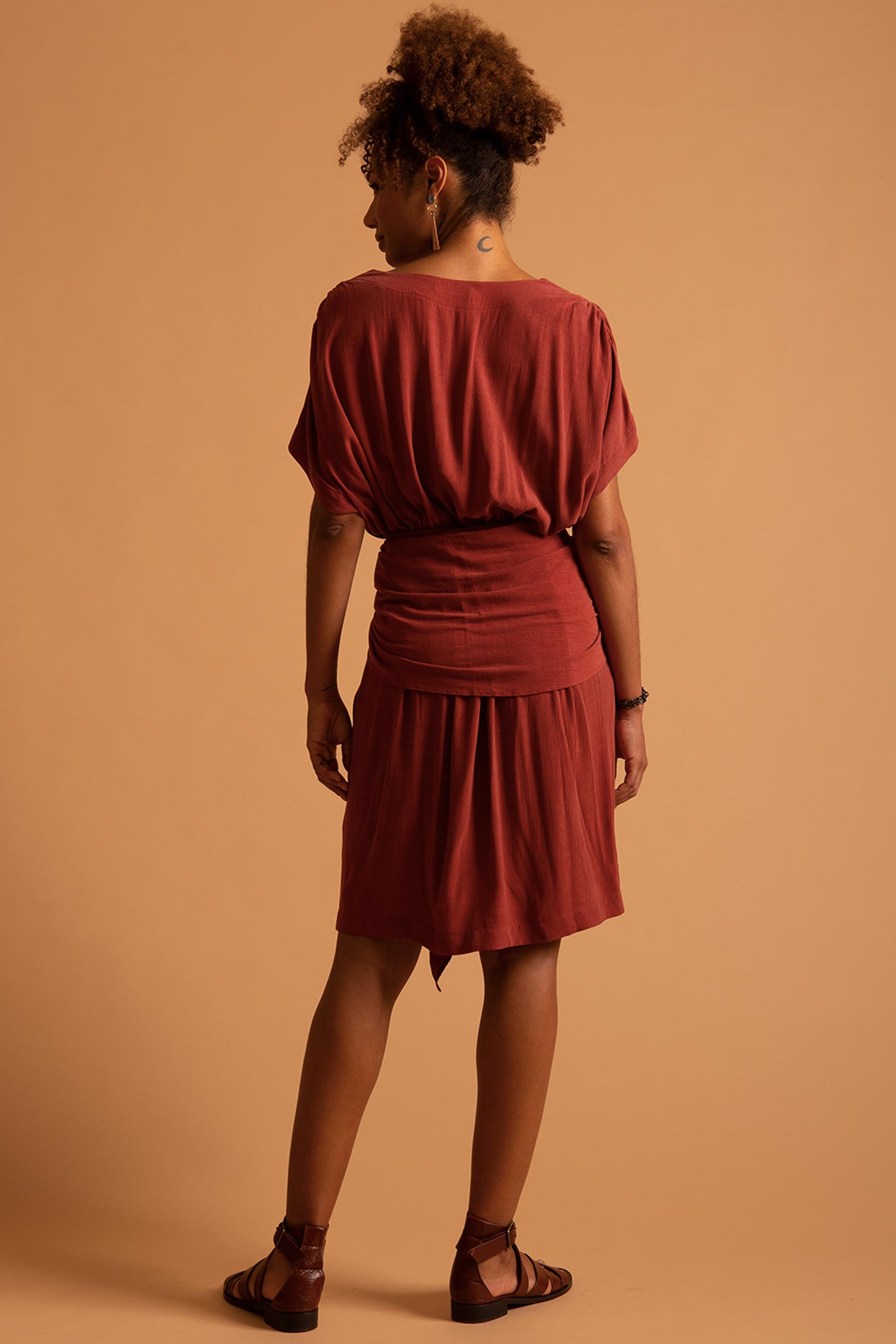 Feito em tecido que lembra uma seda estonada, um dos tecidos mais amados aqui na NAUANIN, com caimento fluído e toque macio.
