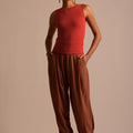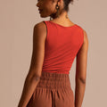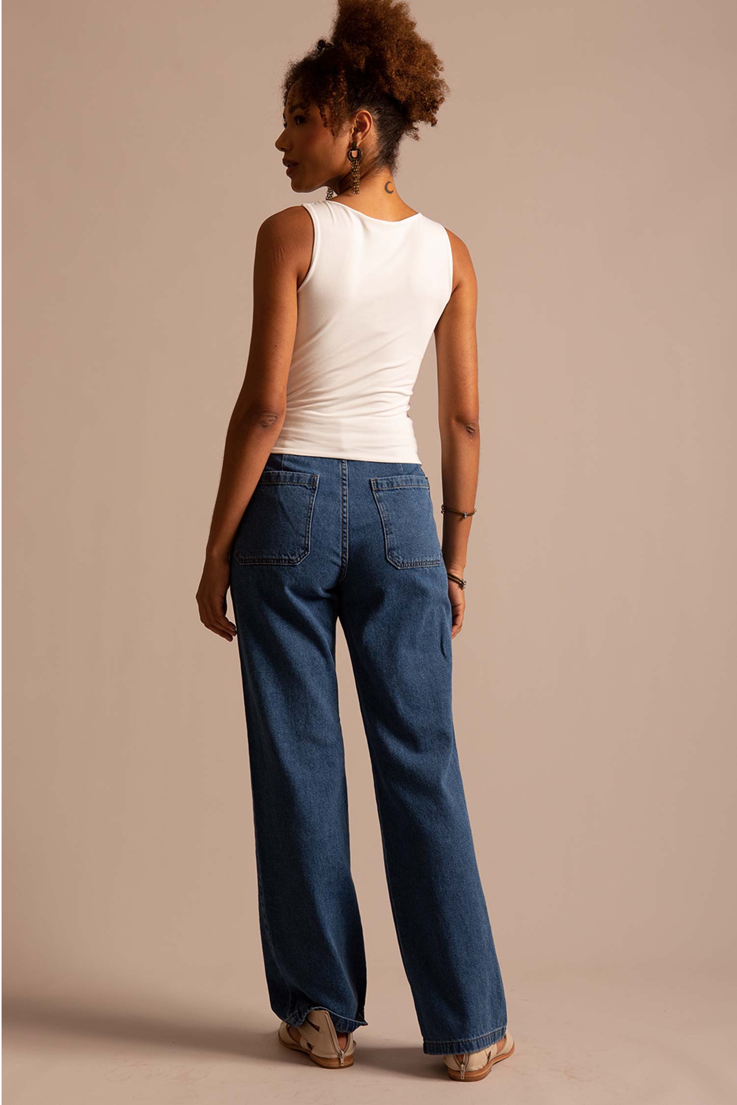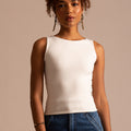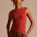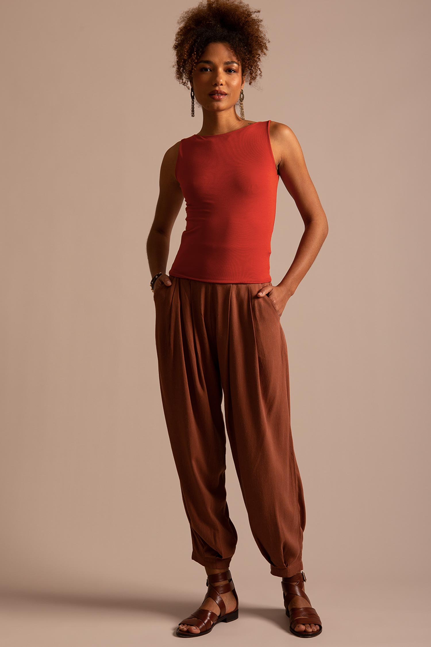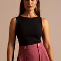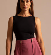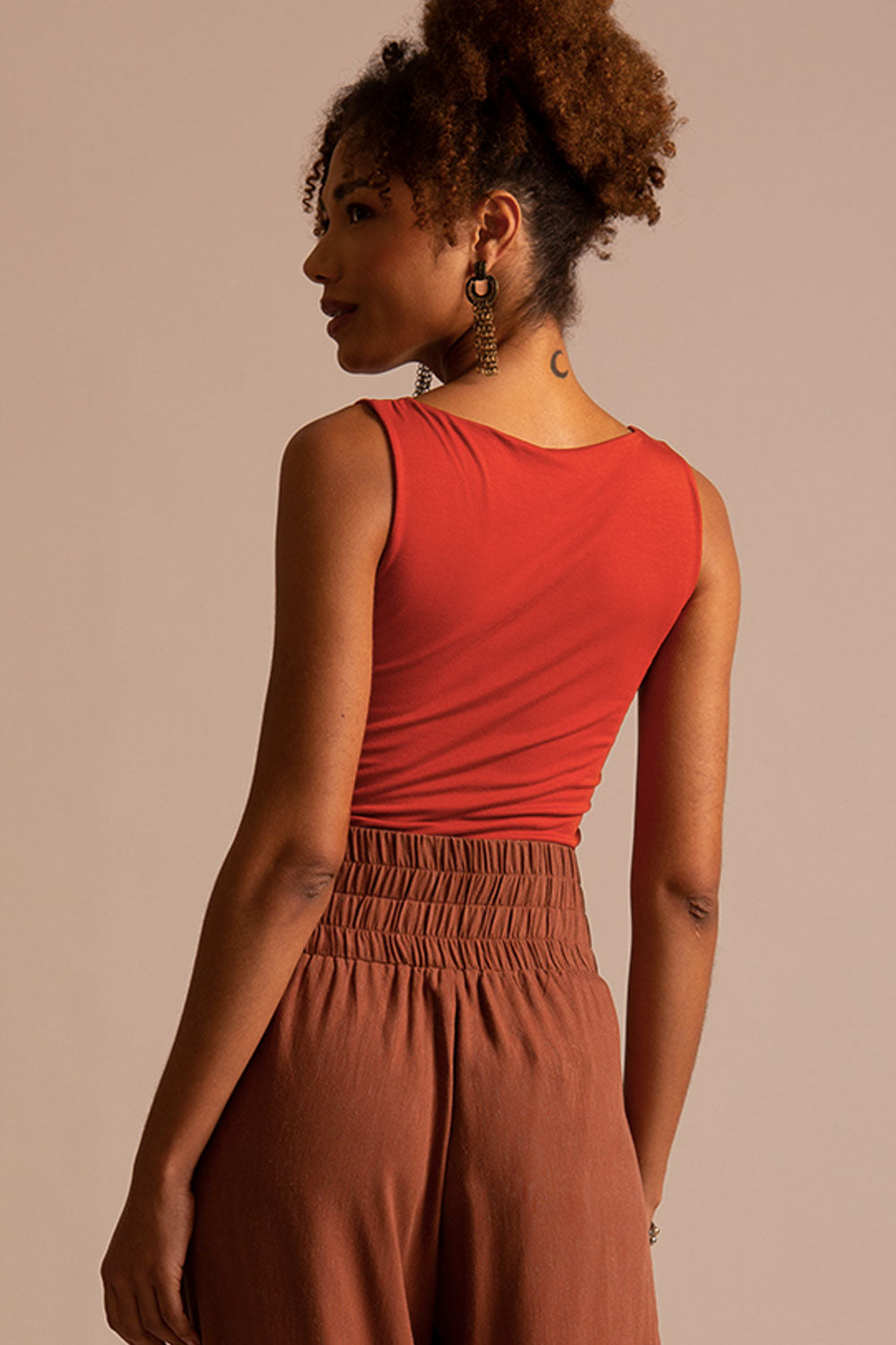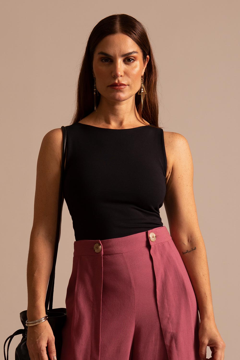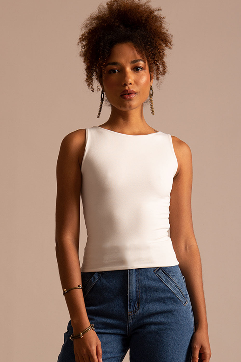 Blusa com a mesma modelagem da nossa já consagrada Blusa Nai, porém com comprimento mais alongado. Toda dupla, sem manga e com decote canoa.