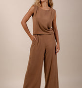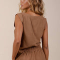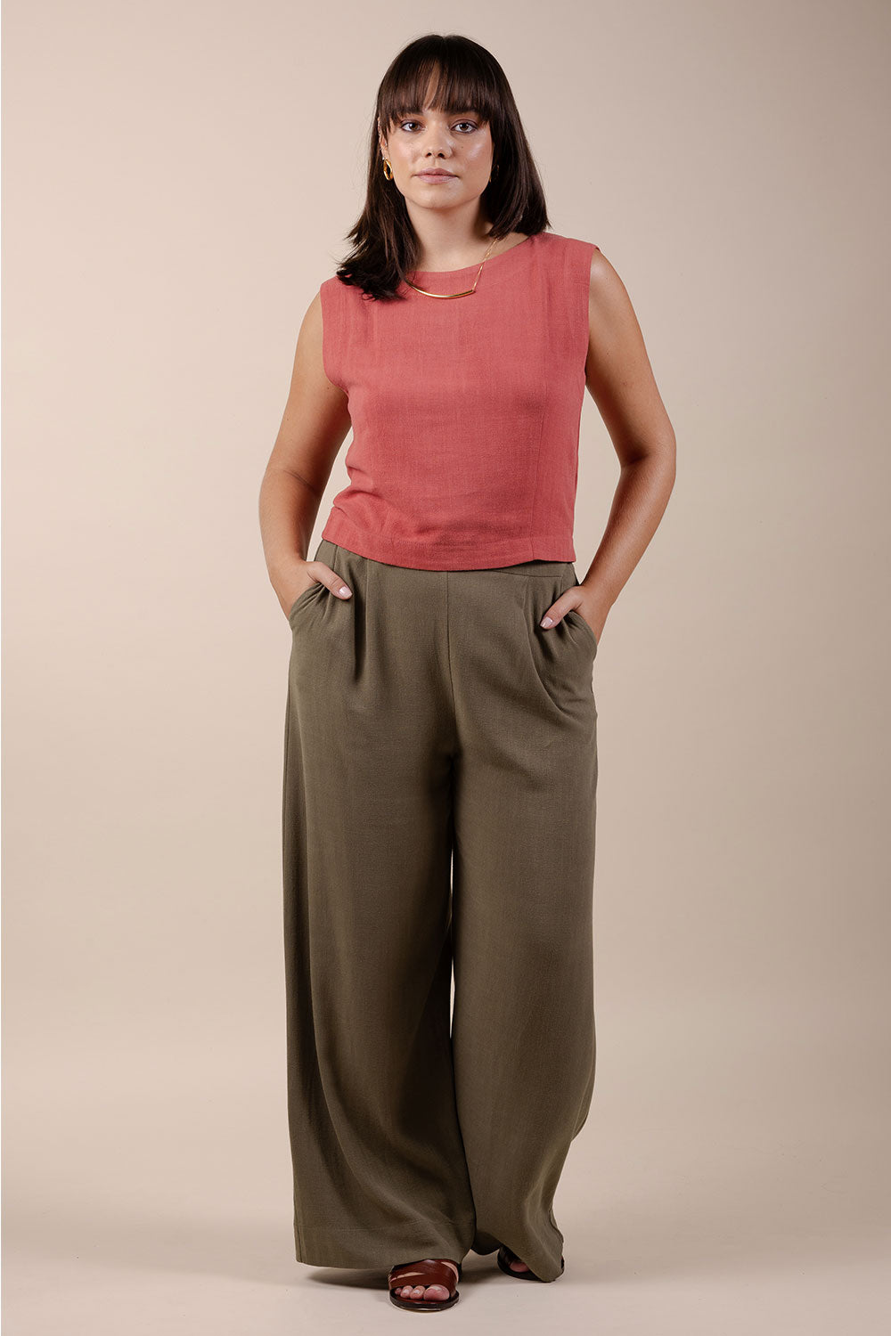 Blusa com decote V, sem manga e modelagem mais certinha no corpo.