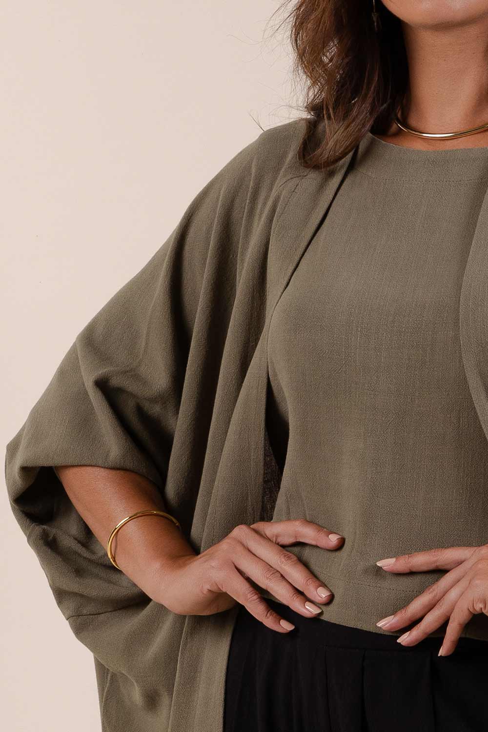 Como toda fibra de viscose, essa peça pode sofrer encolhimento quando lavada, mas volta ao normal com o calor da passadoria. Caso não seja adepta de passar roupa, considere a compra de um tamanho maior.