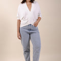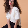 Nossa clássica  e amada Blusa Casulo, agora em cores outonais, chics e atemporais. Com decote V , formato triangular, mais curta na frente e longa atrás.