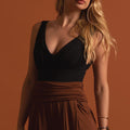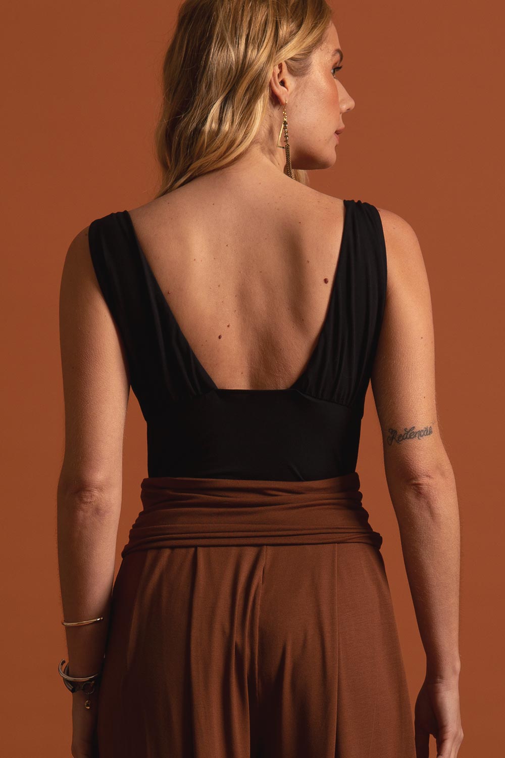 O Body Ângela é feito em malha modal, um tecido que além da qualidade dá um toque suave no corpo.