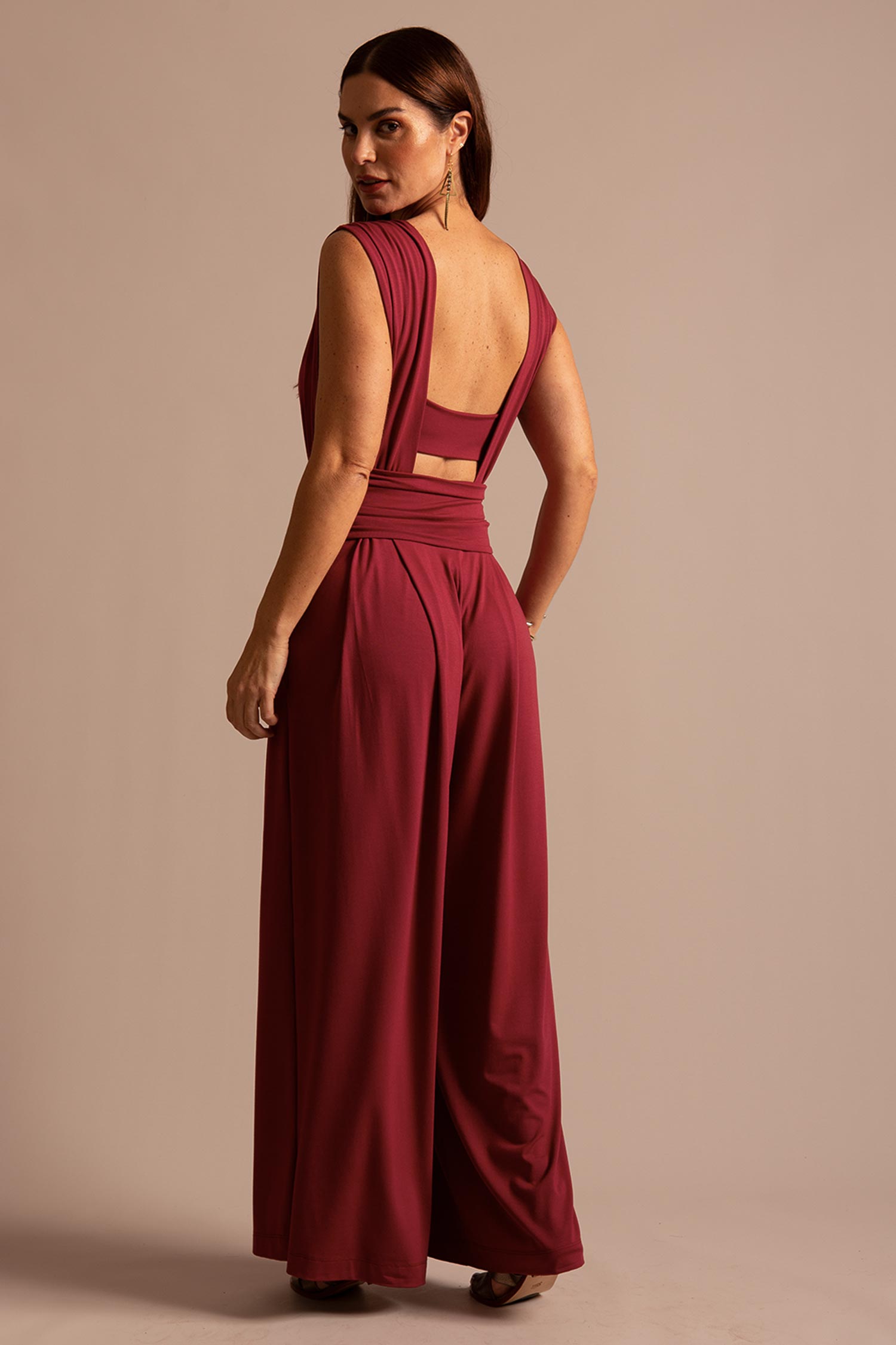 Esse body tem decote V profundo até a cintura, todo drapeado, e acompanha top pra ser usado por baixo dele, criando desenhos geométricos e recortes na pele.