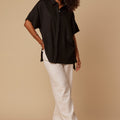 Camisa oversized, de shape solto, grande, podendo ser usada como camisa ou como terceira peça. Aquela peça muito perfeita pro guarda roupa de verão.